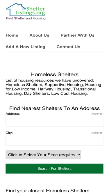 100%find homeless shelters, day shelters, halfway houses, housing for low income, affordable permanent housing, using our online housing database.