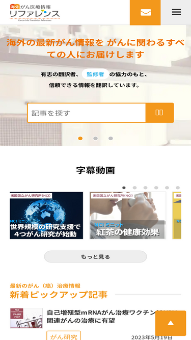 81%ニュースフィード : 海外のがん治療最新情報をお届けするサイトです。がん患者とご家族、医療者の方々に米国国立がん研究所(NCI)の治療法・検査技術研究・治験や米国食品医薬品局(FDA)抗癌剤新薬承認ニュース、他、信頼性の高い情報を翻訳、配信しています。