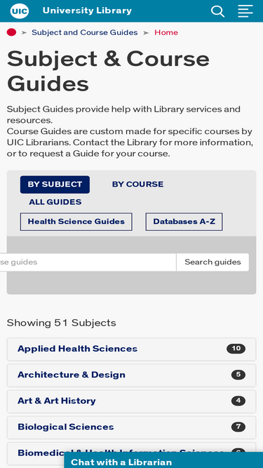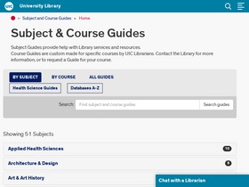 80%Subject & Course Guides Subject Guides provide help with Library services and resources.Course Guides are custom made for specific courses by UIC Librarians. Contact the Library for more information, or to request a Guide for your course.