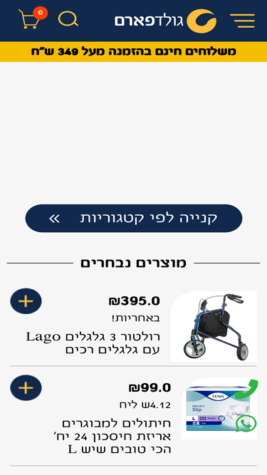 82%חיתולים למבוגרים ואביזרי שיקום קונים רק בגולדפארם! אנחנו כאן כדי לתת לכם את המוצרים הטובים והאיכותיים ביותר לגיל השלישי. למבחר המוצרים שלנו >