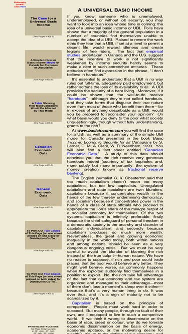 85%the case for a universal basic income and a simple basic income model for canada (developed for purposes of discussion) as presented in the book ’basic income: economic security for all canadians’ by s. lerner, c. m. a. clark, w. r. needham, 1999
