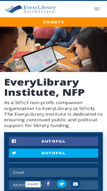 63%EveryLibrary Institute is a 501c3 organization that supports library funding in the United States.