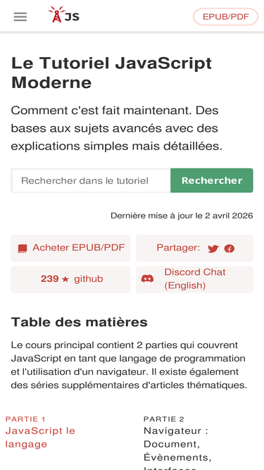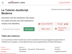 tutoriel javascript moderne : explications simples mais détaillées avec des exemples et des exercices, y compris : les closures, le document et les événements, la programmation orientée objet et plus encore.