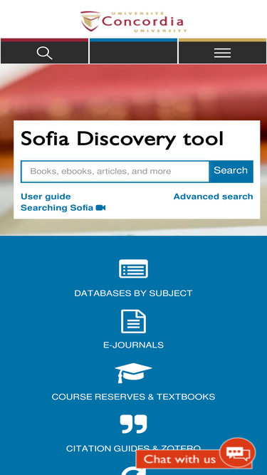 80%concordia university library located in montreal, quebec, canada provides access to the sofia discovery tool for searching the library's collections, databases by subject, e-journals, writing and citing guides.