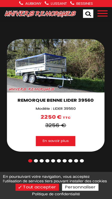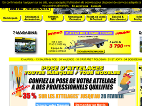 96%Remorque neuve et remorque d'occasion. Pose attelages tous véhicules. Remorque promo et remorque premium. Remorque particulier et professionnel. Tous prix tous modèles. Fabrication et distribution de remorques de qualité depuis 45 ans. Vente et location de remorque. Accessoires pour remorque, entretien et réparation remorque. Tous types de remorque de 350 kg à 3.500 kg. 7 magasins en France.