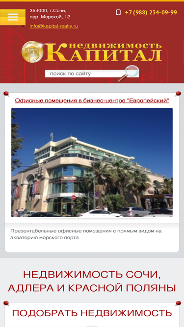 недвижимость в сочи: элитные квартиры, дома, новостройки, коттеджи по самым оптимальным ценам предлагает ан капитал-недвижимость. мы предлагаем квартиры, дома и офисы как в центре города, так и в других районах сочи. цены от застройщика.