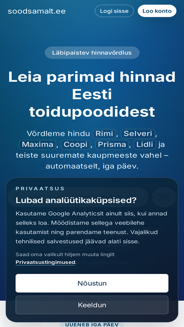 78%Võrdle toidukaupade hindu Eesti suurimates poodides: Rimi, Selver, Maxima, Coop, Prisma ja Lidl. Leia kiiresti parim hind.