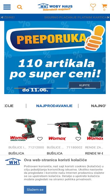 94%Woby Haus - najveći izbor hobi i profesionalnog alata: električni alat, baštenski alat, ručni alat, pneumatika, pribor, kućni aparati, grejna tela, bicikli