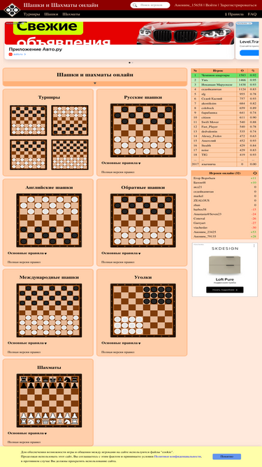 бесплатная площадка для игры в шашки и шахматы онлайн. на сайте представлены наиболее популярные разновидности шашек: русские, английские, обратные (поддавки), международные (стоклеточные), уголки. предоставляется возможность игры онлайн с компьютером, с человеком, а также оффлайн 1 на 1 (игра на двоих).