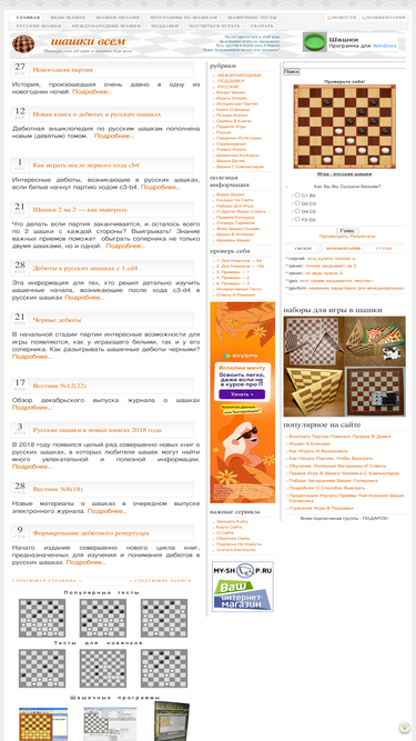77%доступно и интересно о популярных видах игры в шашки и событиях в шашечном мире. советы, как научиться играть в шашки, задания для обучения и проверки своих возможностей. игра онлайн, флеш шашки, книги о шашках, шашечные программы, шашки для детей и многое другое