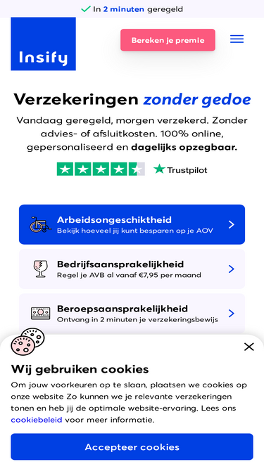 92%Insify's missie is om freelancers en ondernemers online te verzekeren tegen arbeidsongeschiktheid en aansprakelijkheid. Direct, simpel en online.