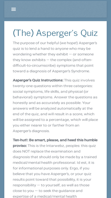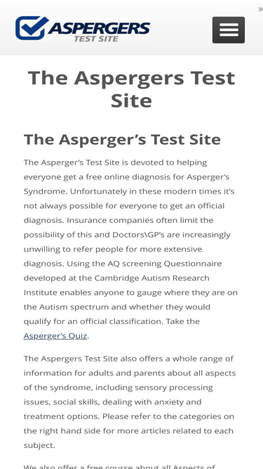 free online asperger's aq quiz test. info on aspergers syndrome to help individuals & families better handle challenges that aspies experience in everyday life.