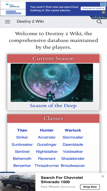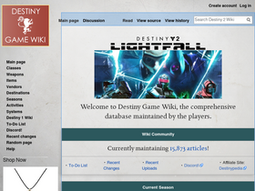 96%Destinypedia is a comprehensive wiki and encyclopedia dedicated to the Destiny video game franchise from Bungie, with 11,270 articles.