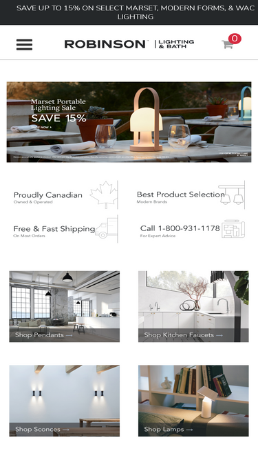 100%robinson is a canadian-owned retailer of lighting and plumbing. operating from 32 showroom and warehouse locations, robinson offers the widest selection of high quality brands to design-conscious consumers, designers and trades in canada.