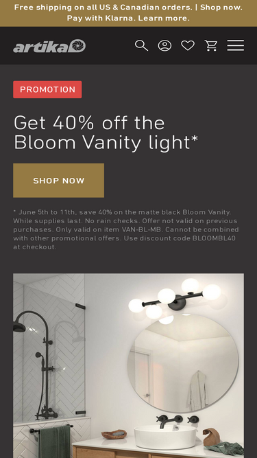 98%Get a head start on savings! From Nov 7-17, save 25% on orders of $299+ at Artika Canada. Shop lighting, mirrors & home essentials before Black Friday hits!