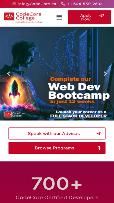 CodeCore Developer Bootcamp is an intensive in-person training program in professional web development program offered by CodeCore which runs for 12 weeks at a time out of Vancouver, B.C. Canada. They are known as “Bootcamps” due to their high intensity and fast pace which is designed to get students up to speed with the skills required and into jobs as fast as possible.