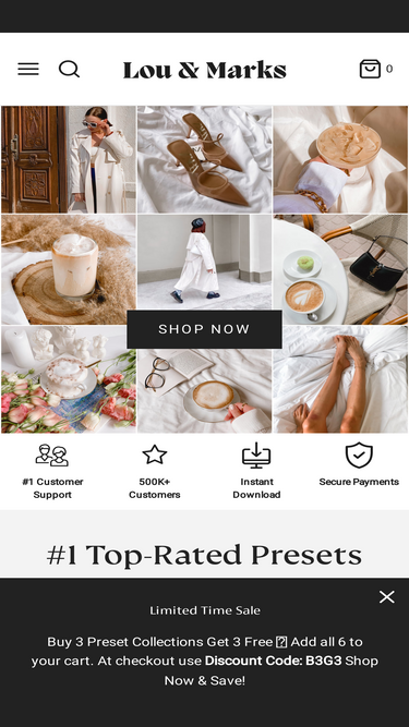 89%Unlock Every Preset We Make – Save $2700 (93%) with the All Access Bundle Ready to take your photo editing to the next level? With the All Access Bundle, you get instant access to every Lou & Marks preset collection—over 200 presets and counting! Whether you're a photographer, influencer, or just someone who loves editing their photos, this is the ultimate toolkit to help you bring your vision to life. Why You'll Love the All Access Bundle: Massive Savings: Save $2700 or 93% compared to buying each collection separately! The All Access Bundle is the best way to get all our presets for one amazing price. Unlimited Updates: Never miss out on new presets! We’ll send you a fresh download link every time we release a new collection or update an existing one. Plus, you’ll get lifetime access to everything we release, including 30+ new collections in 2026! 200+ Presets Included: Get access to all 200+ Lou & Marks preset collections right away, with more added regularly. From light & airy to emotional, moody edits, there’s a preset for every style you love. Free Updates for 2025 & Beyond: Enjoy instant access to all future updates—including 30+ new collections coming in 2026—absolutely free! Exclusive Access to Retired Presets: You’ll also get 50+ retired presets from past collections, including fan favorites like Adventure, Dreamland, Vintage Glow, and more. Preset Reference Guide: We’ve made it easy to find the perfect preset for your photos with a handy reference guide, so you can quickly browse through all our collections and choose the one that fits your style. What’s Inside the Bundle? All Styles: From Bright & Airy to Boho, Clean & Colorful, Moody, Warm, Film, and more. We’ve got every style covered! Mobile & Desktop Compatibility: Works seamlessly with the free Lightroom Mobile app (iPhone & Android), Lightroom Desktop (Mac & Windows), and Photoshop CC. Edit your photos on any device, anywhere. Perfect for Ever