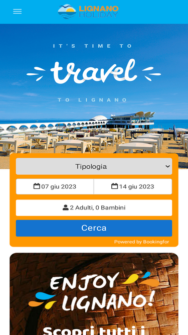 97%Lignano Holiday è il tuo partner di fiducia per gli hotel, gli appartamenti e i campeggi per una indimenticabile vacanza sulle spiagge di Lignano Sabbiadoro, Lignano Pineta e Lignano Riviera. Prenota subito il tuo soggiorno a Lignano.
