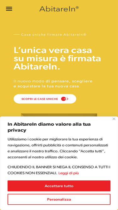 66%Case uniche firmate AbitareIn®. L’unica vera casa su misura è firmata AbitareIn. Il nuovo modo di pensare, scegliere e acquistare la tua nuova casa.
