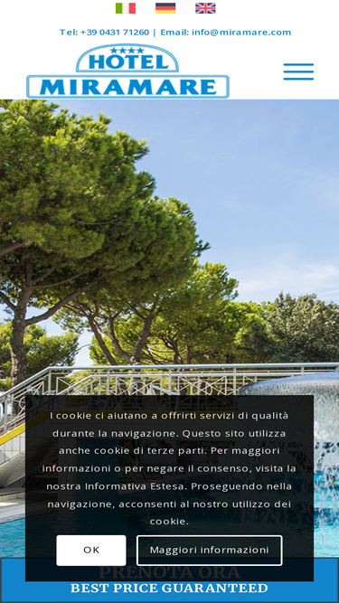 69%In una posizione privilegiata direttamente sul mare, l’Hotel Miramare di Lignano Sabbiadoro accoglie i suoi ospiti in un ambiente accogliente e moderno. La posizione centrale combina attività e relax ottimali per una vacanza perfetta al mare.