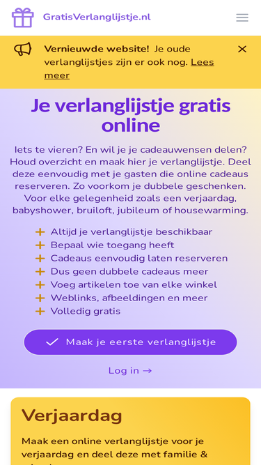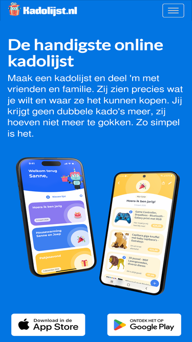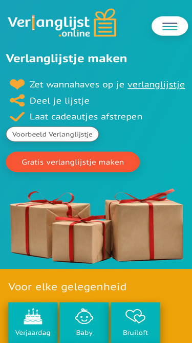 85%maak gratis een online verlanglijst aan. geef hem een persoonlijke link, deel hem en laat familie en vrienden kado’s afstrepen.