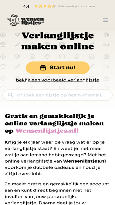 100%maak gratis je online verlanglijstje en deel deze met vrienden en familie. de nummer 1 voor het maken van verlanglijstjes! geen wensen? laat je inspireren.