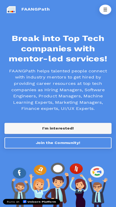 76%FAANGPath helps people to get their dream job in companies like Facebook, Apple, Amazon, Netflix, Google, Microsoft and more for multiple roles. Get In Touch!