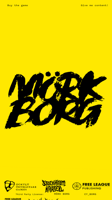 MÖRK BORG is a pitch-black apocalyptic RPG by Ockult Örtmästare Games and Stockholm Kartell. It's published by Free League Publishing and available in English and Swedish.