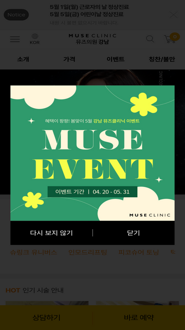 100%뮤즈클리닉 강남의 특별 이벤트와 프로모션을 확인하세요. 한정된 기간 동안 제공되는 특별 할인 혜택을 놓치지 마세요.