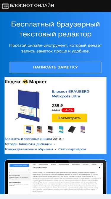 80%блокнот онлайн - это браузерный текстовый редактор с функцией автосохранения, что обеспечивает более удобный способ записи заметок на ходу.