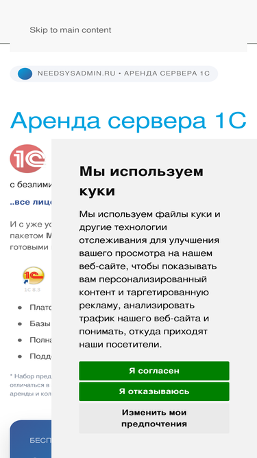 80%аренда сервера 1с. office 2016 уже установлен. от 3800 рублей месяц за 4 пользователей по rdp. полное техническое обслуживание и поддержка.