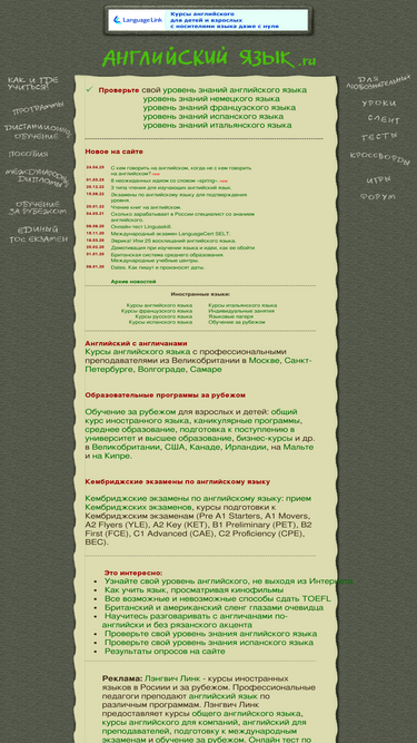 96%на страничках английского языка. ru : аналитические материалы о том, где и как учить английский язык, бесплатные уроки английского языка on-line, кроссворды, тесты по английскому языку, игры и многое другое...
