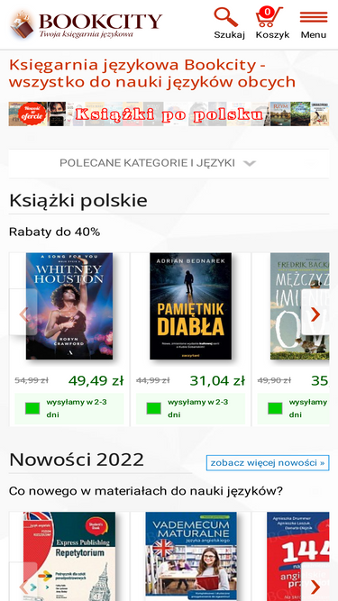 73%bookcity - internetowa księgarnia językowa. słowniki, podręczniki, książki, książki obcojęzyczne, w oryginale, płyty do nauki angielskiego, niemieckiego, francuskiego, włoskiego, hiszpańskiego, rosyjskiego i innych języków.