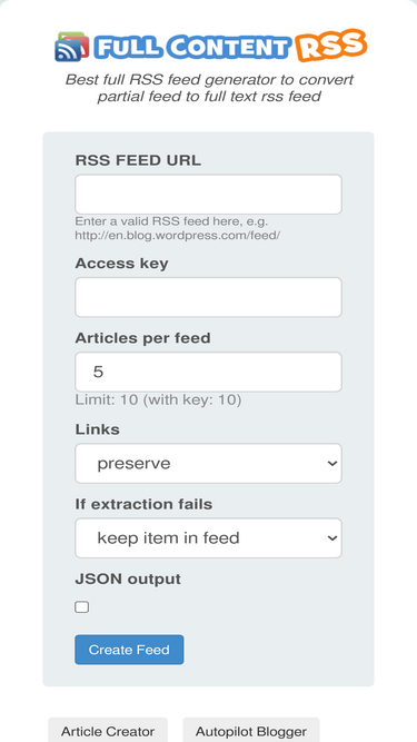 100%best full rss feed generator to convert partial feed to full text rss feed