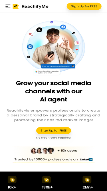 100%ReachifyMe is an AI tool that creates high quality engaging LinkedIn posts using AI. Schedule your posts at the best times and suggest trending topics to create LinkedIn posts.