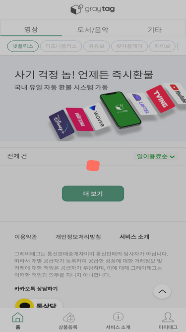 86%넷플릭스부터 왓챠, 웨이브까지. 계정 공유 사기 걱정 끝! '원하는 기간만 안전하게' 언제든 환불 가능한 그레이태그에서 만나보세요. > 그레이태그