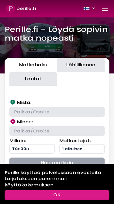 83%Koko Suomen lähi- ja kaukoliikenne samasta palvelusta. VR, Matkahuolto, Onnibus, Savonlinja ja monet muut! Suomen kattavin matkalippupalvelu.