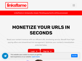 93%linksflame: transform links into cash linksflame is a cutting-edge platform designed to turn your online links into a steady stream of income. whether you’re a blogger, influencer, or digital marketer, linksflame offers an effortless way to monetize your web traffic. with our user-friendly interface, you can easily create, manage, and optimize your monetized links. simply shorten your urls through our platform, share them with your audience, and start earning commissions for every click.