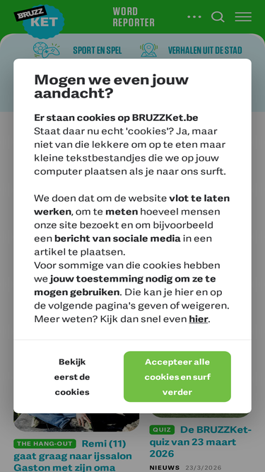 89%Heeft jouw klas iets te zeggen over de Brusselse actualiteit en willen jullie dat graag delen met anderen? Word dan een Reporter-klas bij BRUZZKet en schrijf je nu in!