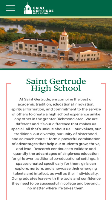 100%at saint gertrude, we combine the best of academic tradition, educational innovation, spiritual formation, and commitment to the service of others to create a high school experience unlike any other in the greater richmond area.