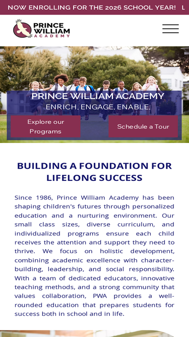 76%Prince William Academy, one of Prince William County's best private school, provides an enriched educational experience for children from infancy to grade school, fostering academic excellence, social growth, and a love for learning in a nurturing environment.
