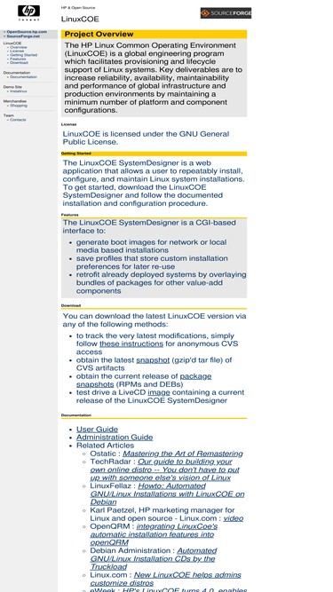 98%the hp linux common operating environment (linuxcoe) is a global engineering program which facilitates provisioning and lifecycle support of linux systems. key deliverables are to increase reliability, availability, maintainability and performance of managed services' global infrastructure and production environments, by maintaining a minimum number of platform and component configurations.