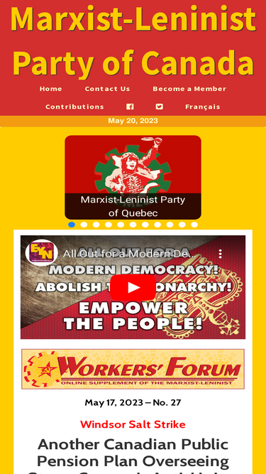 100%Communist Party of Canada (Marxist-Leninist) Contact Information National Leader Anna Di Carlo P.O. Box 666, Station C Montreal, QC H2L 4L5 info@cpcml.ca leadermlpc@cpcml.ca National Office P.O. Box 666, Station C Montreal, QC H2L 4L5 Tel: (613) 792-4475 Quebec Headquarters 1360, rue Ontario Est Montreal, QC H2L 1S1 Tel: (514) 522-5872 Workers’ Centre workerscentre@cpcml.ca Regional Offices […]
