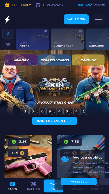 92%CaseStorm'da CS2 ve CS:GO kutularını açarak nadir skinler elde edin. Kutu savaşlarına katılın ve her açılışta özel ödüllerin tadını çıkarın.