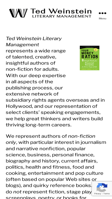 53%Ted Weinstein Literary Management represents a wide range of talented, creative, insightful authors of non-fiction for adults. With our deep expertise in all aspects of the publishing process, our extensive network of subsidiary rights agents overseas and in Hollywood, and our representation of sele