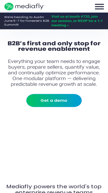 85%The only end-to-end revenue enablement platform Mediafly’s AI-powered revenue enablement software aligns marketing, sales, and customer success on one