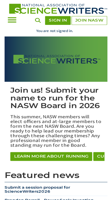 The National Association of Science Writers is a community of more than 2,300 journalists, authors, editors, producers, public information officers, students and people who write and produce material intended to inform the public about science, health, engineering, and technology.