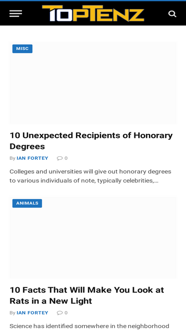 90%Thank you to our sponsors and patrons who donate money to help TopTenz continue to publish content that you can enjoy here on our website and on our YouTube Channel, TopTenzNet. Email us with questions or if you have a problem ordering: sponsors@toptenz.net. Click to See Our Current List of Sponsors. If you wish to contribute, you can do so with the form below. Your sponsorship helps pay for the many people across the world who work to publish content and videos for TopTenz every day. We enlist writers, copy editors, narrators, and video producers to make high quality, interesting lists.