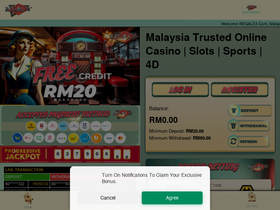 96%REGAL33 are an online casino platform that offers a wide variety of games. Fast withdraw, Fast deposit, 24 hours customer service available. Some of the most popular casino games played online by Malaysian include slots, blackjack, roulette, baccarat, and sports. Online online pokies offer a convenient way to gamble as they can be accessed from anywhere with an internet connection. You also can be a casino agent to earn 10% commission. We also offer a wide variety of bonuses and promotions to our players.