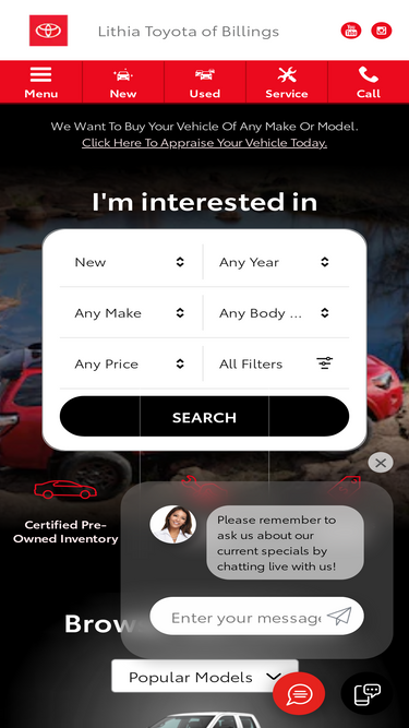 86%lithia toyota of billings is your choice for new toyota and used cars in billings, mt. we offer top-notch service, parts, and financing. shop online today!
